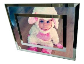 Porta Retrato De Cristal Doble Filo Plateado Impreso 23x18cm