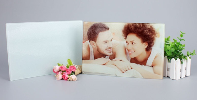 Porta Retrato De Cristal Filo Plateado Impreso 23x18cm
